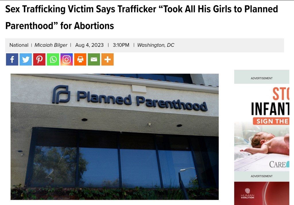 “Another study published in 2014 by the Beazley Institute for Health Law and Policy similarly found that victims “had significant contact with clinical treatment facilities, most commonly Planned Parenthood clinics.” Of those involved in the research, about 30 percent had visited a Planned Parenthood while being trafficked.” – https://www.icmec.org/wp-content/uploads/2015/10/Health-Consequences-of-Sex-Trafficking-and-Implications-for-Identifying-Victims-Lederer.pdf