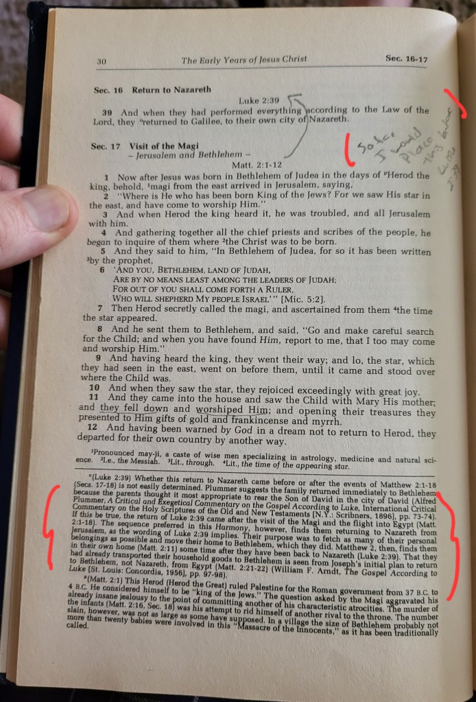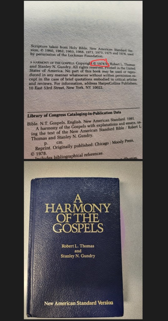 Below is a picture of just one of many Harmonies of the Gospels where a scholar or two or more will place the gospels in a timeline and show how these timeline “contradictions” can be viewed and then shown to not really be a contradiction given some plausible real-life scenarios that would explain the “contradiction” and thus showing that they are not real contradictions like Bart and others seemed to indicate.