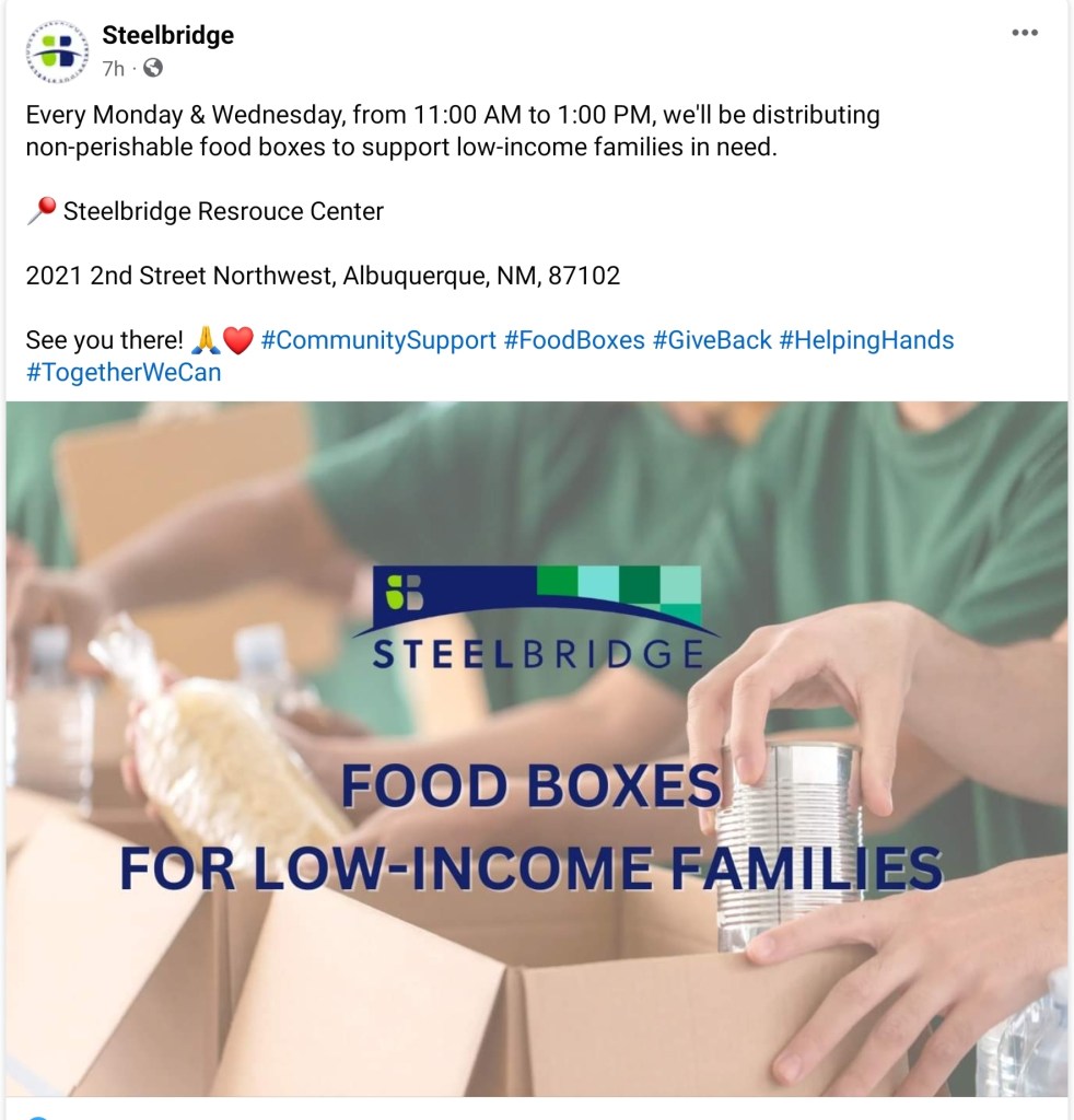 Steelbridge also has a great facility for those seeking to get off the streets Jesus’ way. Call 505-346-4673 if this is of interest to you.