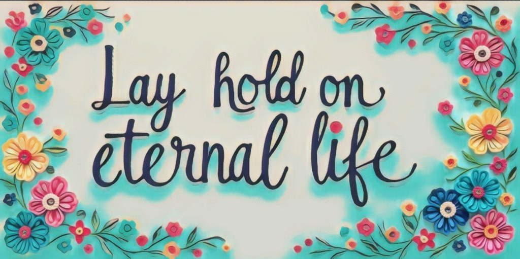 “FIGHT THE GOOD FIGHT OF FAITH, LAY HOLD ON ETERNAL LIFE, whereunto thou art also called, and hast professed a good profession before many witnesses……Charge them that are RICH IN THIS WORLD, that they be not highminded, nor trust in uncertain riches, but in the living God, who giveth us richly all things to enjoy; that they do good, THAT THEY BE RICH IN GOOD WORKS, ready to distribute, willing to communicate; LAYING UP IN STORE for themselves a good foundation against the time to come, THAT THEY MAY LAY HOLD ON ETERNAL LIFE.