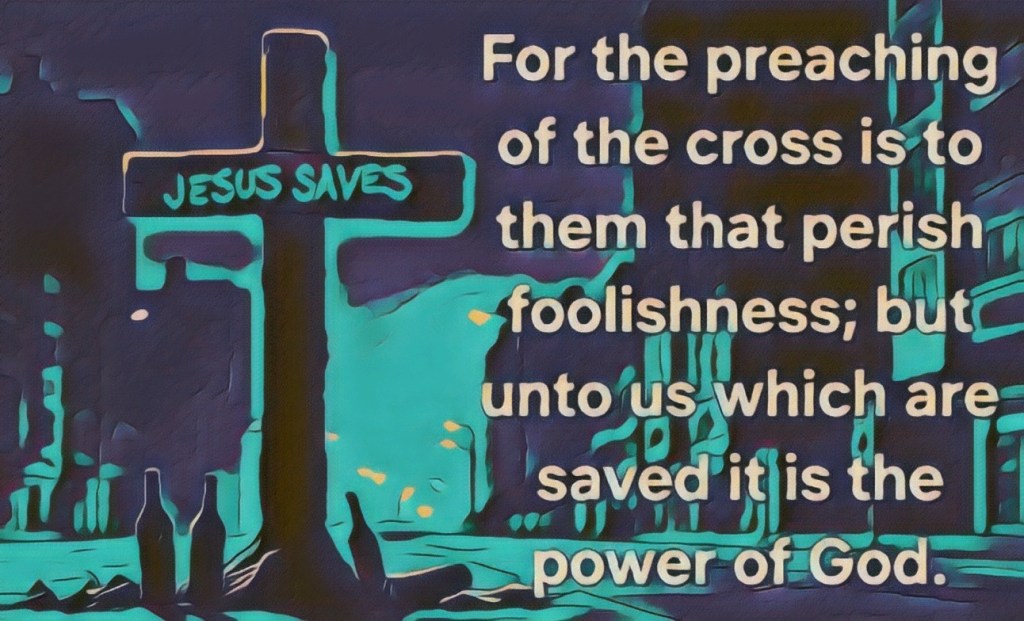 “For the preaching of the cross is to them that perish foolishness; but unto us which are saved it is the power of God…..but we preach Christ crucified, unto the Jews a stumblingblock, and unto the Greeks foolishness; but unto them which are called, both Jews and Greeks, Christ the power of God, and the wisdom of God.” – 1 Corinthians 1:18,23,24
