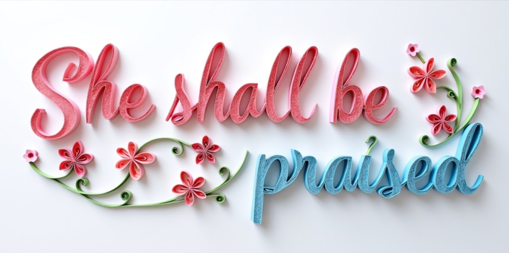 “She looketh well to the ways of her household, And eateth not the bread of idleness. Her children arise up, and call her blessed; Her husband also, and he praiseth her. Many daughters have done virtuously, But thou excellest them all. Favour is deceitful, and beauty is vain: But a woman that feareth the LORD, she shall be praised. Give her of the fruit of her hands; And let her own works praise her in the gates.” – Proverbs 31:27-31