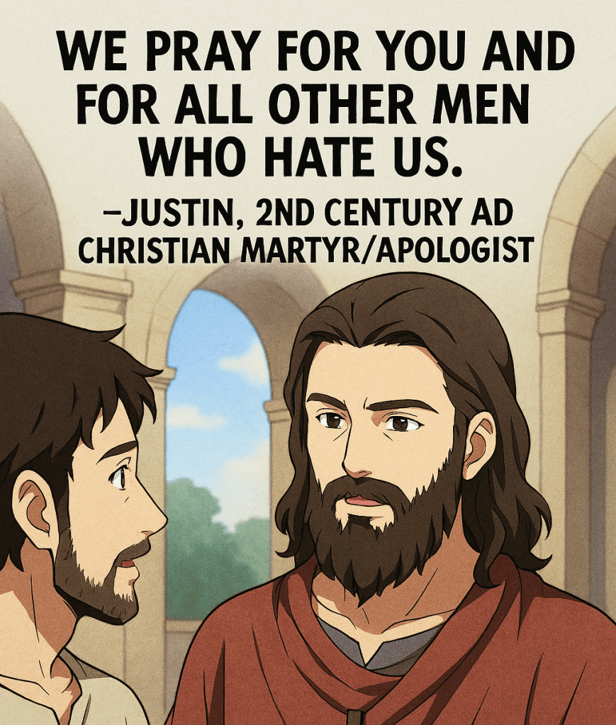 Wherefore we pray for you and for all other men who hate us; in order that you, having repented along with us, may not blaspheme Him who, by His works, by the mighty deeds even now wrought through His name, by the words He taught, by the prophecies announced concerning Him, is the blameless, and in all things irreproachable, Christ Jesus; but, believing on Him, may be saved in His second glorious advent, and may not be condemned to fire by Him.
