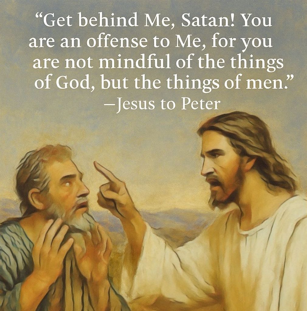 “But when He had turned around and looked at His disciples, He rebuked Peter, saying, “Get behind Me, Satan! For you are not mindful of the things of God, but the things of men.” (Mark 8:33)