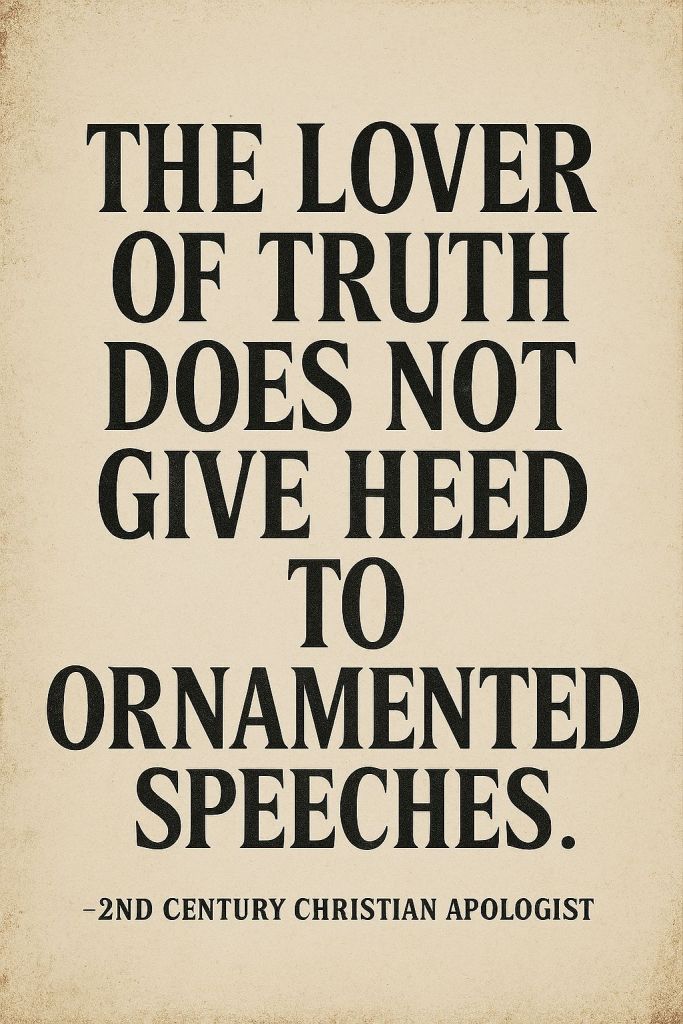 A fluent tongue and an elegant style afford pleasure and such praise as vainglory delights in, to wretched men who have been corrupted in mind; the lover of truth does not give heed to ornamented speeches, but examines the real matter of the speech, what it is, and what kind it is.