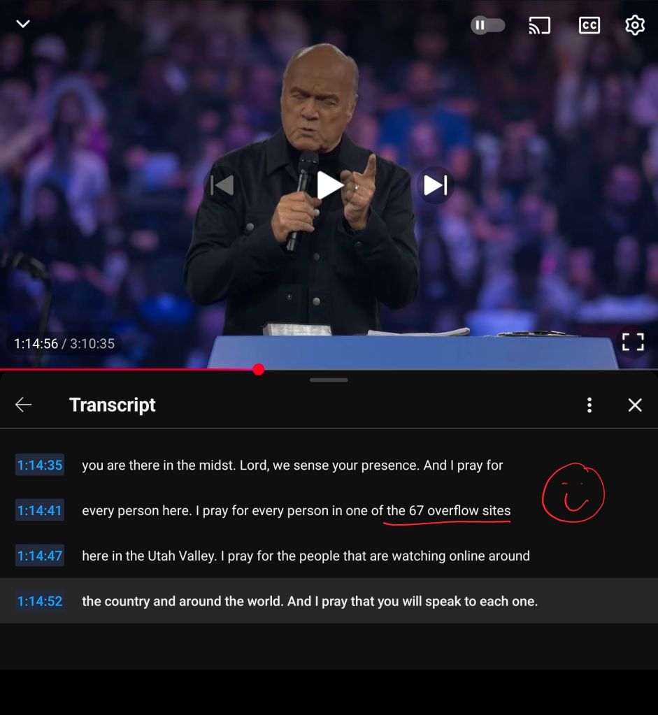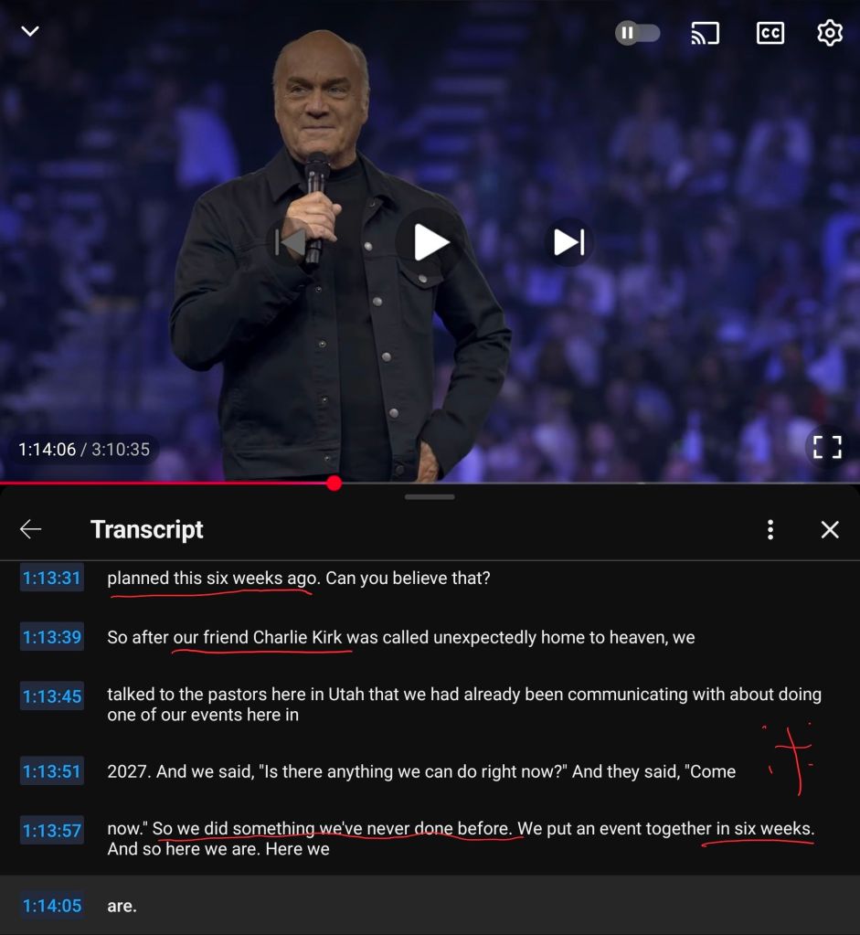 Here are just a few highlights from last night’s event—exactly 67 days after the tragic death of Charlie Kirk at UVU. An outreach event was planned and executed in a record-breaking 6 weeks (6 periods of 7 days!) by Harvest Christian Fellowship. They had 67 overflow sites!
