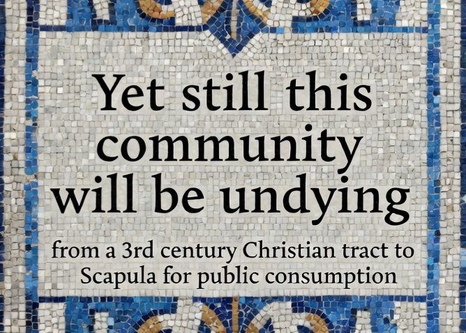 We have no master but God. He is before you, and cannot be hidden from you, but to Him you can do no injury. But those whom you regard as masters are only men, and one day they themselves must die. Yet still this community will be undying, for be assured that just in the time of its seeming overthrow it is built up into greater power. For all who witness the noble patience of its martyrs, as struck with misgivings, are inflamed with desire to examine into the matter in question; and as soon as they come to know the truth, they straightway enrol themselves its disciples.