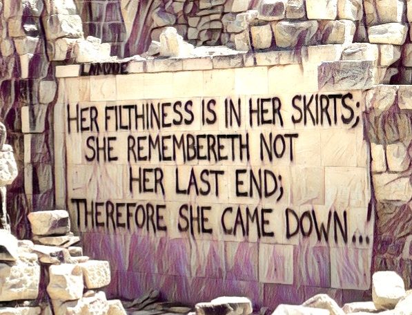 Lamentations 1:9 lamenting the fall of Jerusalem to Babylon 587 or 586 BC depending of the view of the scholar.