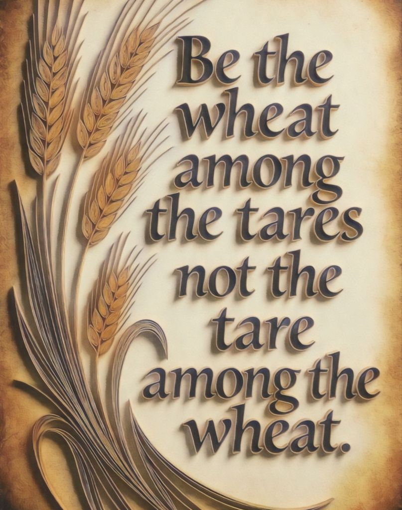 “Another parable put he forth unto them, saying, The kingdom of heaven is likened unto a man which sowed good seed in his field: but while men slept, his enemy came and sowed tares among the wheat, and went his way. But when the blade was sprung up, and brought forth fruit, then appeared the tares also. So the servants of the householder came and said unto him, Sir, didst not thou sow good seed in thy field? from whence then hath it tares? He said unto them, An enemy hath done this. The servants said unto him, Wilt thou then that we go and gather them up? But he said, Nay; lest while ye gather up the tares, ye root up also the wheat with them. Let both grow together until the harvest: and in the time of harvest I will say to the reapers, Gather ye together first the tares, and bind them in bundles to burn them: but gather the wheat into my barn.” – Matthew 13:24-30