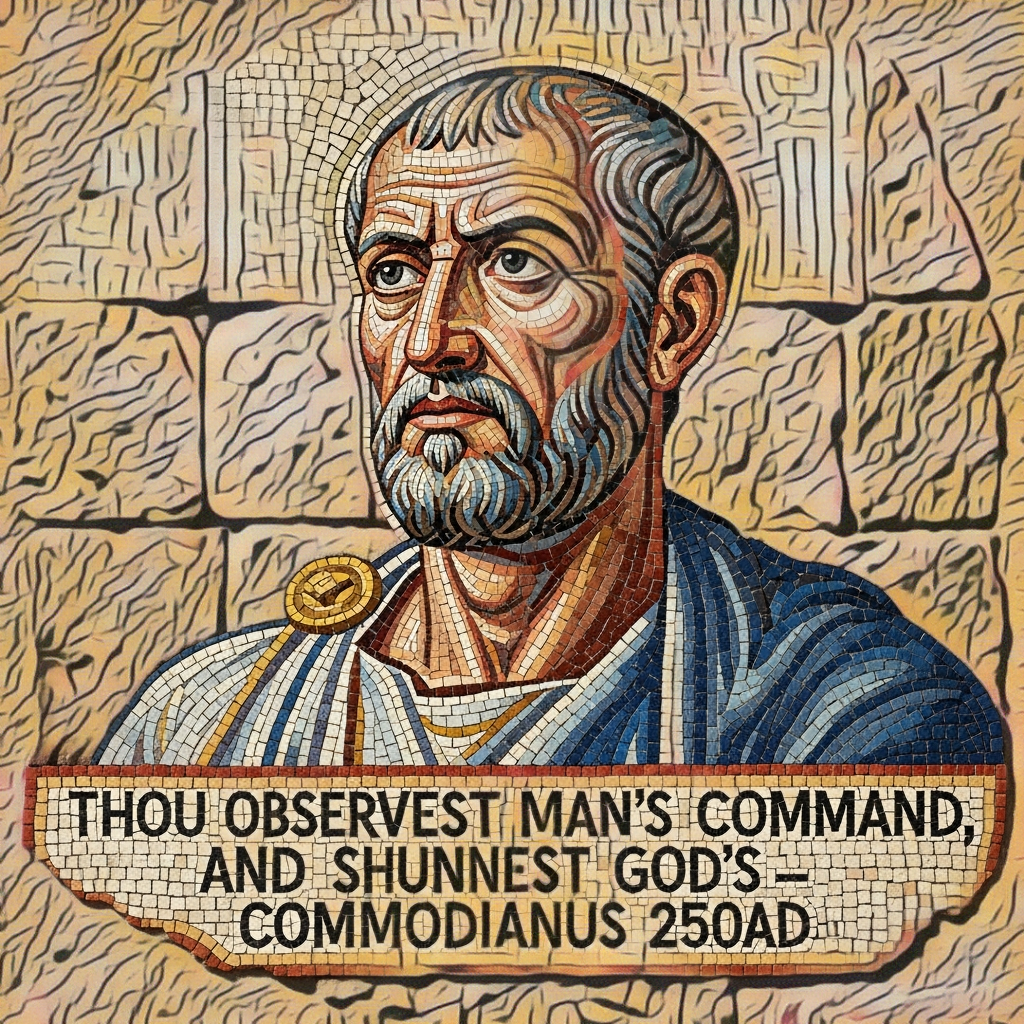 Commodian. 1885. “The Instructions of Commodianus.” In Fathers of the Third Century: Tertullian, Part Fourth; Minucius Felix; Commodian; Origen, Parts First and Second, edited by Alexander Roberts, James Donaldson, and A. Cleveland Coxe, translated by Robert Ernest Wallis, 4:214. The Ante-Nicene Fathers. Buffalo, NY: Christian Literature Company.