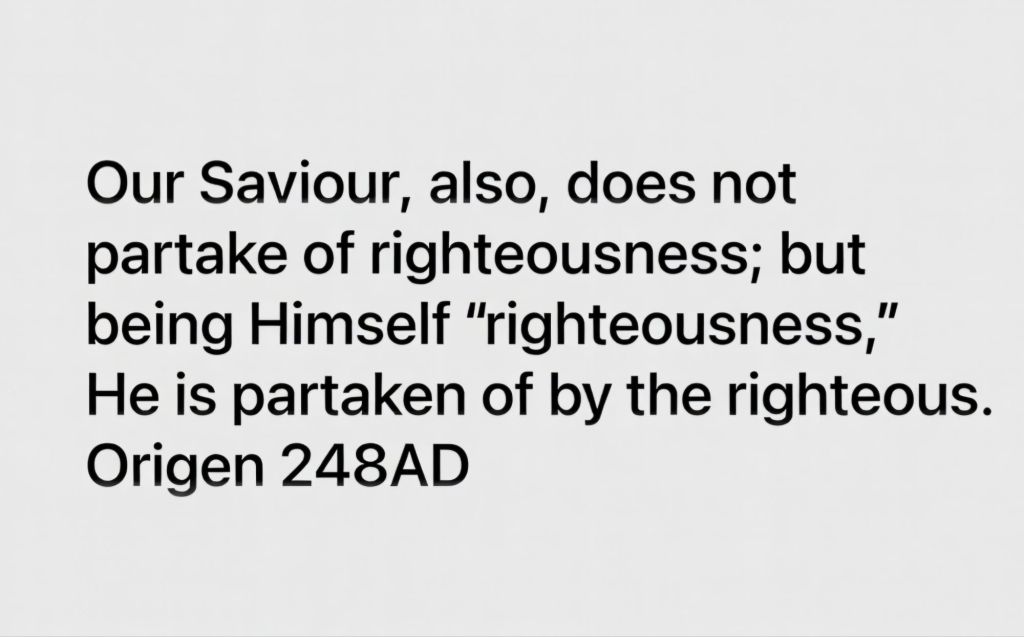 Augustine Our Savoir, our Righteousness Origen 248AD Share this: Share on X (Opens in new window) X Share on Facebook (Opens in new window) Facebook Like Loading... Related