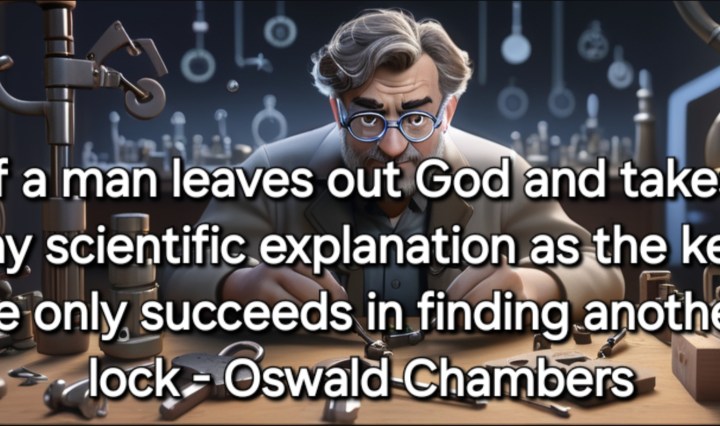 FASCINATING QUOTES FROM OSWALD CHAMBERS WELL BEFORE WHO DIED IN 1917 COMMENTING ON JOB 42:1-6! AND TO THINK OF ALL THE DISCOVERIES THAT HAVE BEEN DISCOVERED SINCE AND YET….! “Again, the atomic theory was thought to be the key; then it was discovered that the atom itself was composed of electrons, and each electron was found to be a universe of its own, and that theory too becomes a lock and not a key. God Himself is the key to the riddle of the universe, and the basis of things are to be found in Him. Everything that man attempts … Continue reading The key to the meaning of life